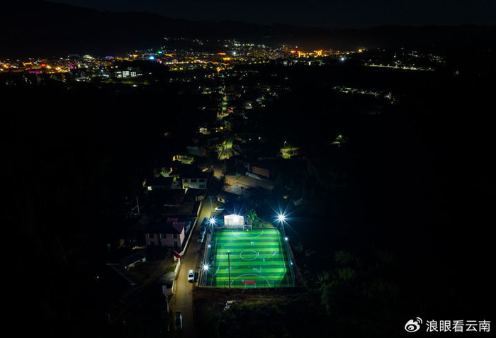 这是无人机拍摄的夜色中的云南省沧源佤族自治县龙乃村足球场(2022年12月7日摄)。新华社记者江文耀 摄